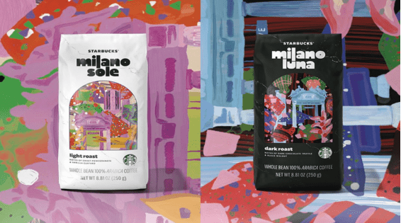 Starbucks Milano Sole features notes of creamy vanilla custard and sweet pomegranate, while Starbucks Milano Luna celebrates the heritage of Starbucks’ coffee roasting, highlighting bold notes of dark chocolate truffle and roasted black walnut.