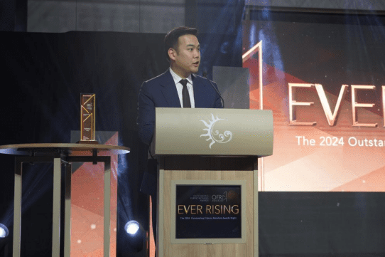 VP for Strategy & Operations Bryan Liu delivering the acceptance speech for the Retail Employer of the Year on behalf of GOLDEN ABC